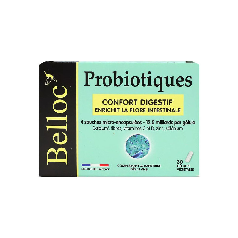 - d’un complexe breveté de quatre souches probiotiques microencapsulées et de fibres afin d’équilibrer et de nourrir votre flore intestinale.