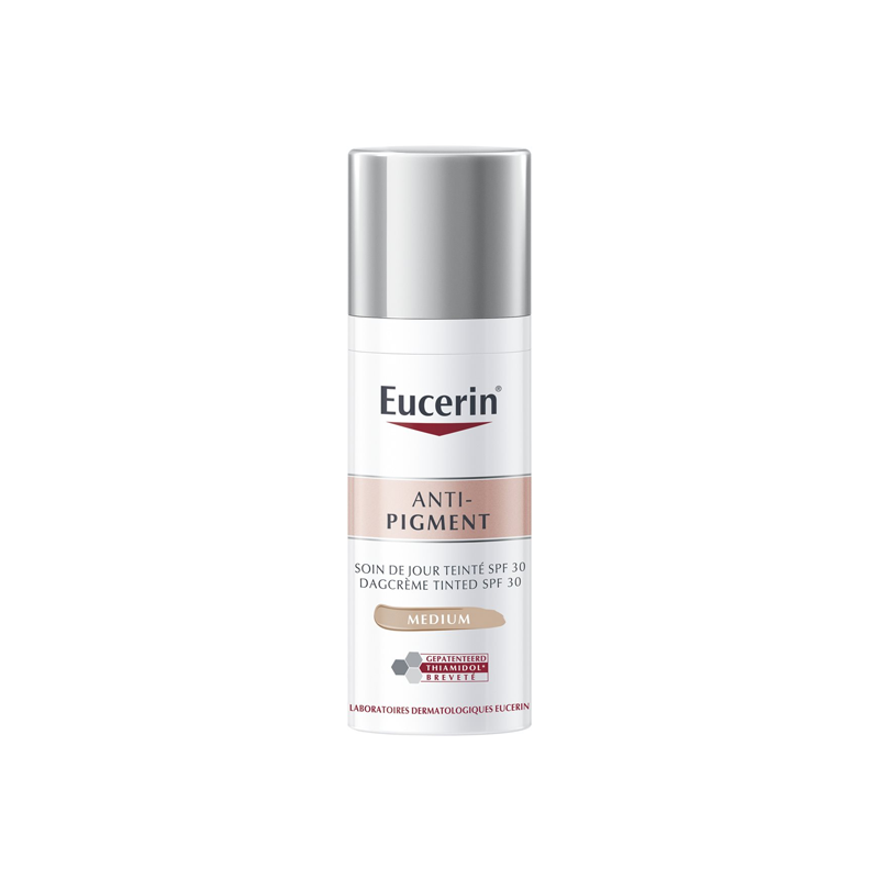 Eucerin anti-pigment soin de jour spf 30 contient du thiamidol, un ingrédient efficace et breveté qui agit à la base de l'hyperpigmentation en réduisant la production de mélanine. il est prouvé par des études cliniques et dermatologiques qu'il réduit les taches brunes et empêche leur réapparition. les premiers résultats sont visibles après deux semaines et s'améliorent continuellement avec une utilisation régulière.