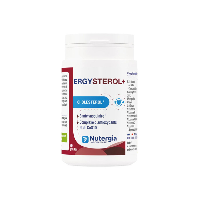 ERGYSTEROL+ contient des ingrédients qui vont agir de façon simultanée et complémentaire sur l’organisme. L’association de plantes (ail blanc et chrysantellum) et de coenzyme Q10, en fait une formule originale et spécifique. Avec les minéraux et vitamines, ERGYSTEROL+ est donc un complément alimentaire complet et montre l’expertise du laboratoire Nutergia. L’ail blanc contribue à la santé vasculaire, car il aide à maintenir des niveaux normaux de lipides dans le sang. Il favorise également le maintien d’un taux normal de cholestérol. Les vitamines B9 et B12 contenues dans ERGYSTEROL+ sont sous forme méthylée pour être plus actives.