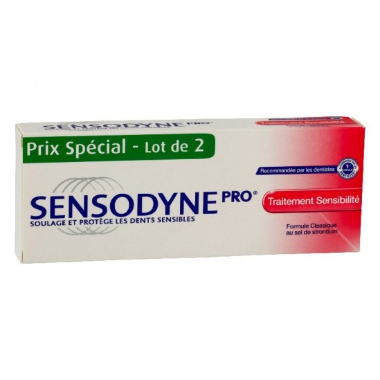 Grâce à sa formule spécifique enrichie en Sel de Strontium, le dentifrice Sensodyne Pro Traitement Sensibilité Lot de 2 x 75 ml soulage efficacement la sensibilité dentaire en formant une barrière protectrice qui bloque le message douloureux.