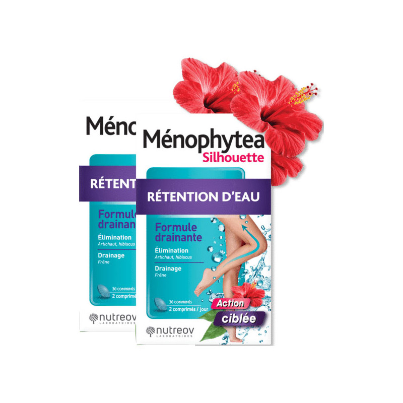 Ménophytea Silhouette Rétention d’eau associe des actifs d’origine végétale (artichaut, hibiscus, frêne) et la vitamine B6, et lutte contre la rétention d’eau par une triple action.