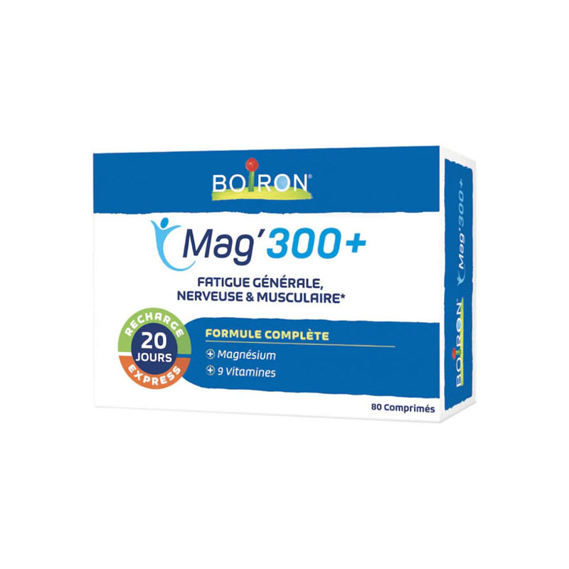 Boiron Mag’300+ est un complément alimentaire à base de magnésium et de 9 vitamines.