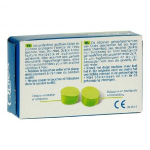 Les protections auditives Quies silicone Natation protègent l'oreille de l'eau (piscine, mer, douche). Grâce à leur texture malléable et légèrement adhérente, elles assurent une parfaite étanchéité.