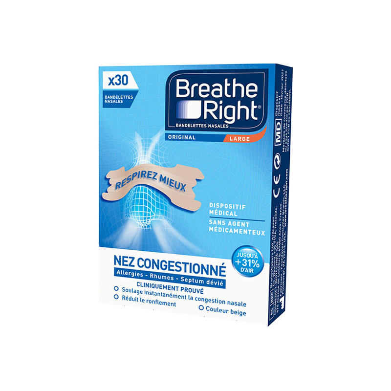 Ne pas utiliser en cas d’allergie au latex ou aux bandelettes nasales Breathe Right