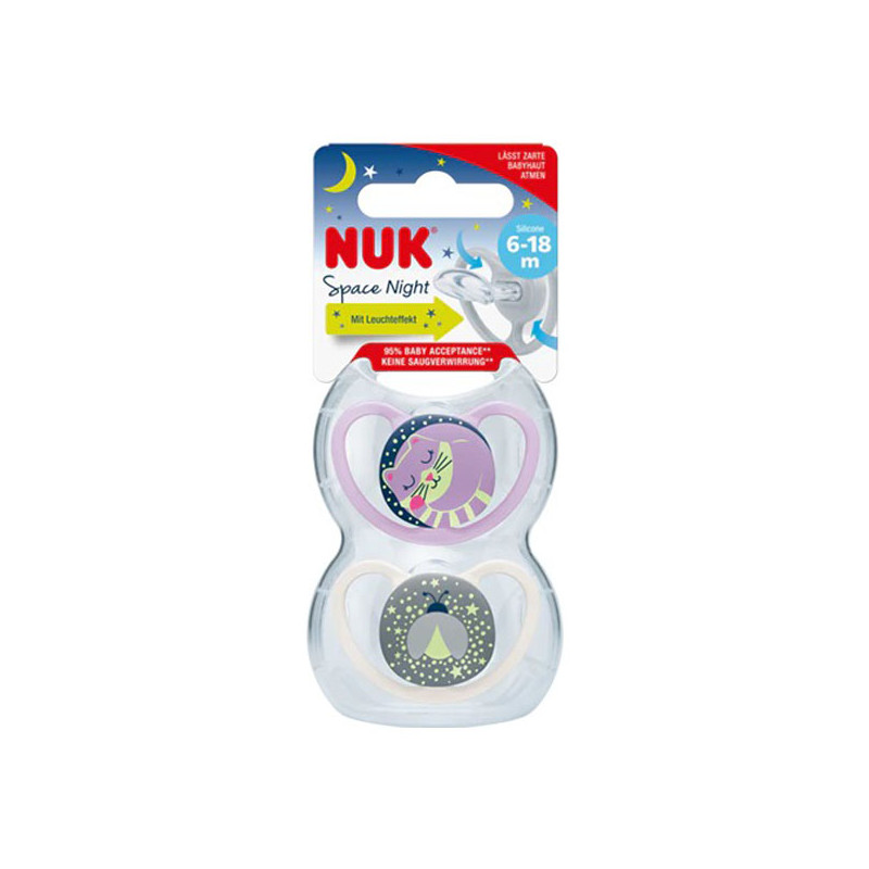 Sucette en silicone Space Night NUK, forme physiologique, 2 pièces