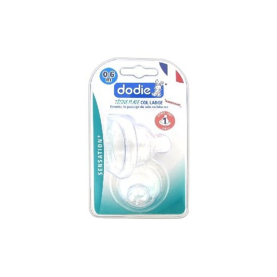 Dodie Sensation+ 2 Tétines Plate Col Large 0-6 Mois Débit 1 Lent est une tétine à débit lent qui reproduit la forme aplatie du sein pendant la tétée. Cette tétine à bout plat reproduit parfaitement la forme du sein pendant la tétée. Son système de double valve anti-colique breveté intégrée favorise une circulation d'air régulière ce qui permet de réduire les risques de coliques, de régurgitation et d'aérophagie. Son embout large est adapté à la bouche de votre enfant, ainsi que sa base large qui l'encourage à l'ouverture de la bouche. Les stries sur la tétine permettent d'éviter le collage des parois pour une tétée plus confortable en continue. Fabriquée en silicone extra-souple, elle est idéale pour une tétée sans se fatiguer.