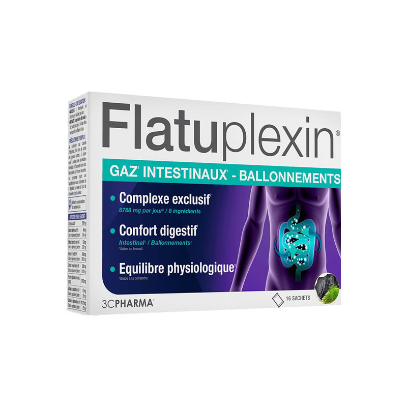 FLATUPLEXIN est un complexe nutritionnel à la formule innovante qui associe du Charbon Végétal activé à 6 plantes et des Fructo-Oligosaccharides.
